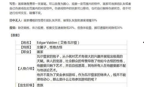 1. 角色设定:视频中展示了多个角色,每个角色都有独特的技能和外观。比如,监管者中的“蜘蛛”可以吐丝缠绕求生者,而求生者中的“医生”则可以治疗队友。